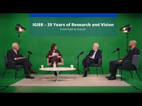 The Innocenzo Gasparini Institute for Economic Research (IGIER) at Bocconi University celebrates today its 35th anniversary, marking more than three decades of influential scholarship, international collaboration, and evidence-based policy impact. To honor this milestone, a special video features founders Mario Monti, Francesco Giavazzi, and current IGIER director Thomas Le Barbanchon in a conversation led by IGIER affiliate Alexia Delfino.