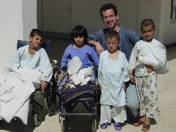 | Alessandro Greblo e alcuni piccoli ospiti dell'ospedale di Kabul |